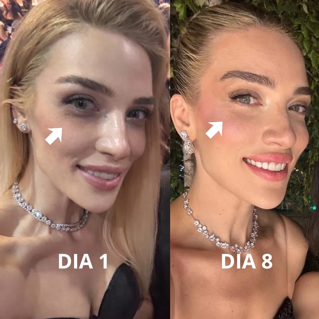 Muitas mulheres relatam melhora na aparência do olhar já nos primeiros dias, especialmente na redução do inchaço e do aspecto de cansaço.